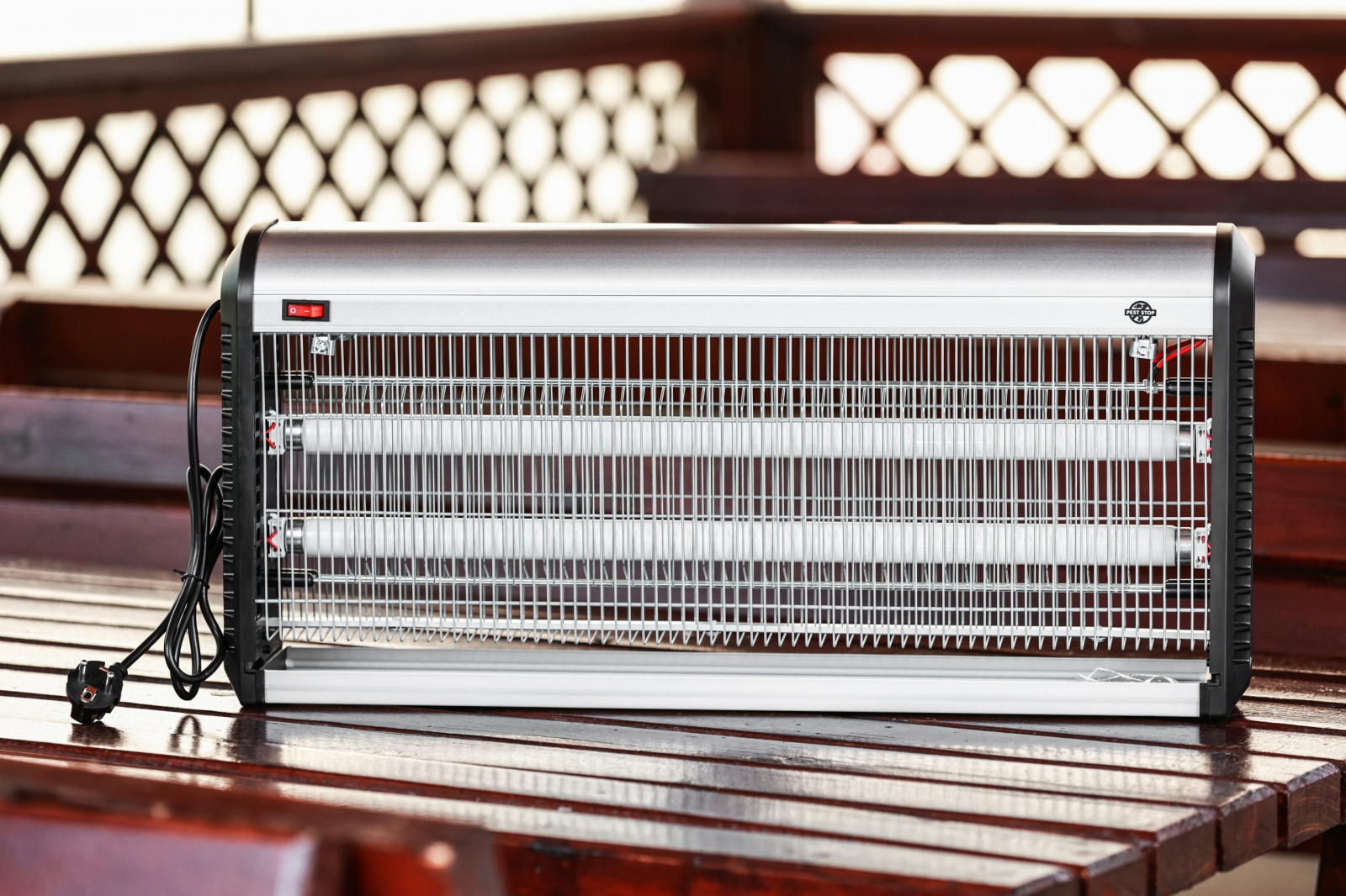 Dispozitivul funcționează cu 2 tuburi UV x 20W care atrag insectele (muște, țânțari, molii), iar grilajul metalic intern cu tensiune de 4500V le elimină instantaneu. Construcția este robustă și compactă, cu un design modern, discret și eficient.